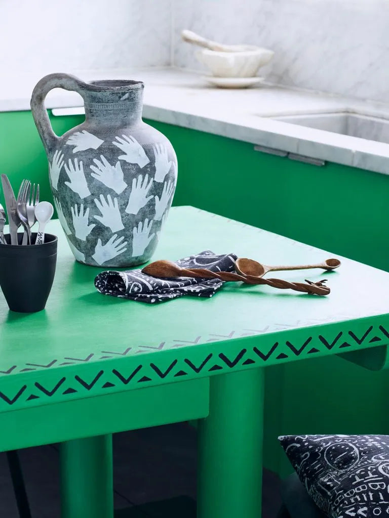 The Hands stencil is a quirky, statement-making motif designed to stand out. It works beautifully solo or as a repeated pattern or border, and fits a wide range of decor aesthetics— from contemporary to rustic to mid‑century modern.