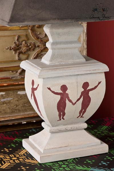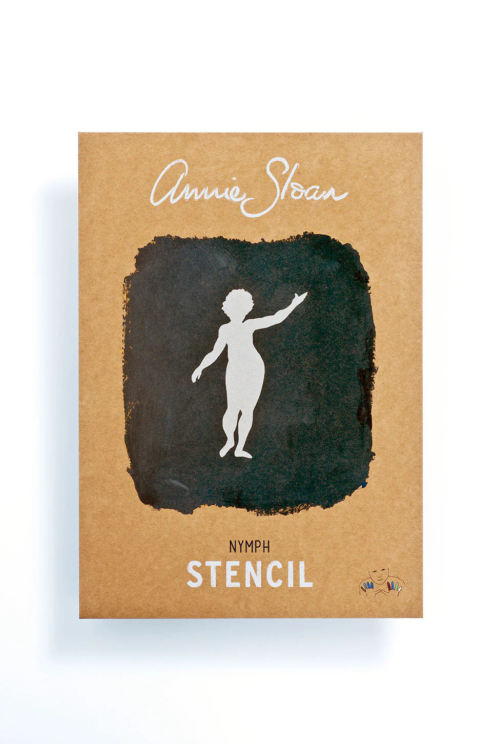 For a beautifully symmetrical effect, you can stencil one figure, the flip (reverse) the stencil and apply a second nymph so they appear to be holding hands - a lovely nod to classic mirrored design.